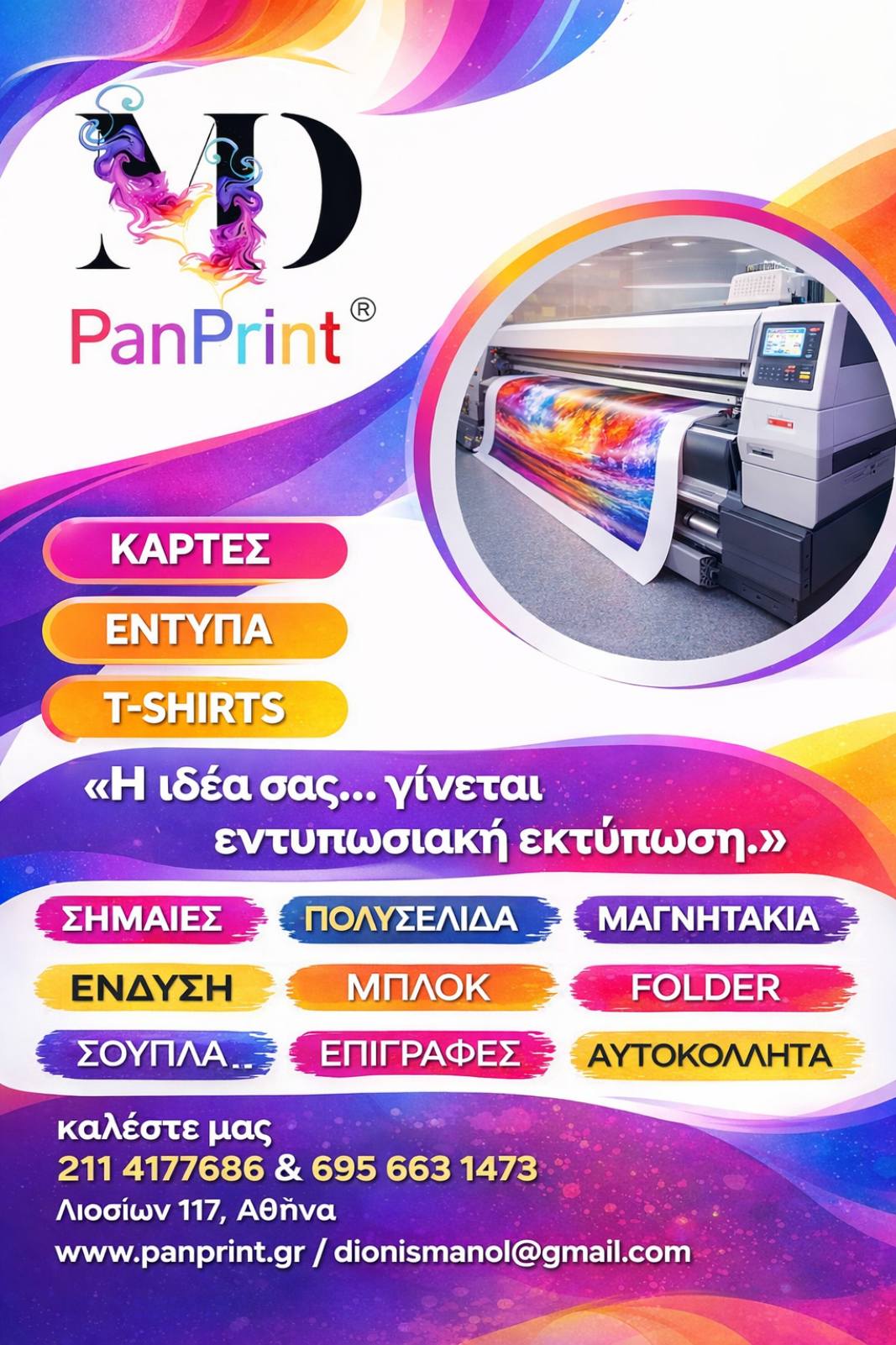 Στην PanPrint δημιουργούμε εκτυπώσεις που ξεχωρίζουν, με σύγχρονες λύσεις και άριστο αποτέλεσμα για κάθε επαγγελματική ανάγκη